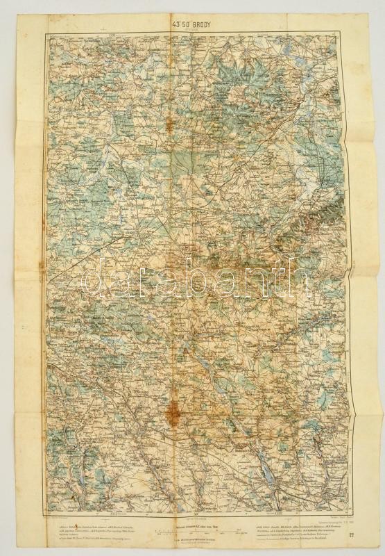cca 1915 Brody és környékének katonai térképe, 1:200.000, K.u.K. Militärgeographisches Institut, hajtásnyomokkal, foltos, 43x62 cm./ cca 1915 Military map of Brody and surroundings, 1:200.000, K.u.K. Militärgeographisches Institut, folded, spotty, 43x62 cm.