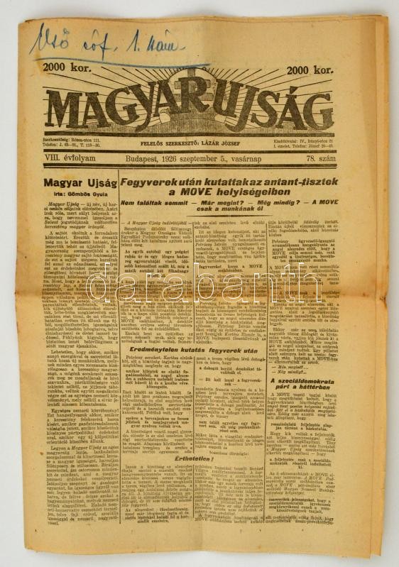 1926 A Magyar Újság induló száma https://www.darabanth.com/de/298-Fernauktion/298.0/Andere-Sammelgebiete/Militaria~100024/1926-A-Magyar-Ujsag-indulo-szama~II1597343