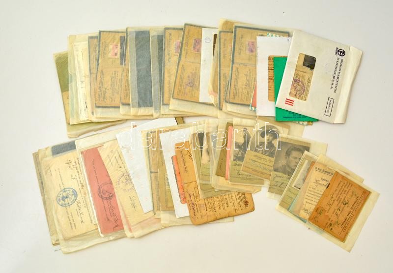 1917-1945 Nagy vegyes cserkész igazolvány tétel, kb. 50 db, egy-két idegennyelvű, egy-két korabeli fénymásolt, valamint egy-két részben kitöltetlen igazolvánnyal, egy részük fényképpel, okmánybélyegekkel, pecsétekkel, aláírásokkal, változó állapotban./ 1917-1945 Scout ID cards, cca 50 pc., in Hungarian language.