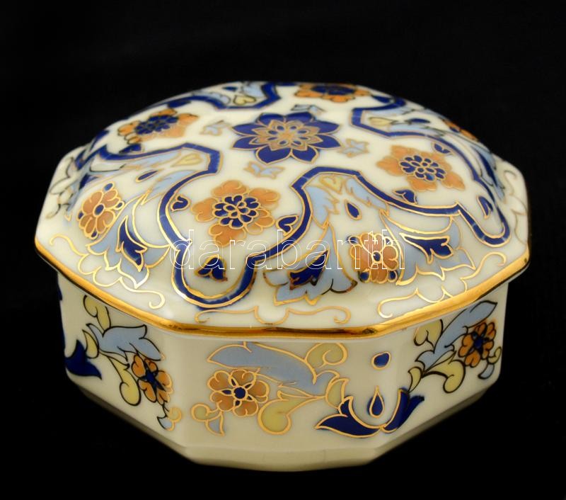 Zsolnay dobozka, kézzel festett, jelzett, hibátlan, d:8,5 cm https://www.darabanth.com/de/298-Fernauktion/298.0/Andere-Sammelgebiete/Porzellan~100007/Zsolnay-dobozka-kezzel-festett-jelzett-hibatlan-d8-5-cm~II1594196