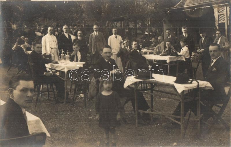 Beschreibung: 1927 Nagyvárad, Oradea; Kék macska vendéglő kerthelyisége, vendégek és pincérek / restaurant garden, waiters, photo