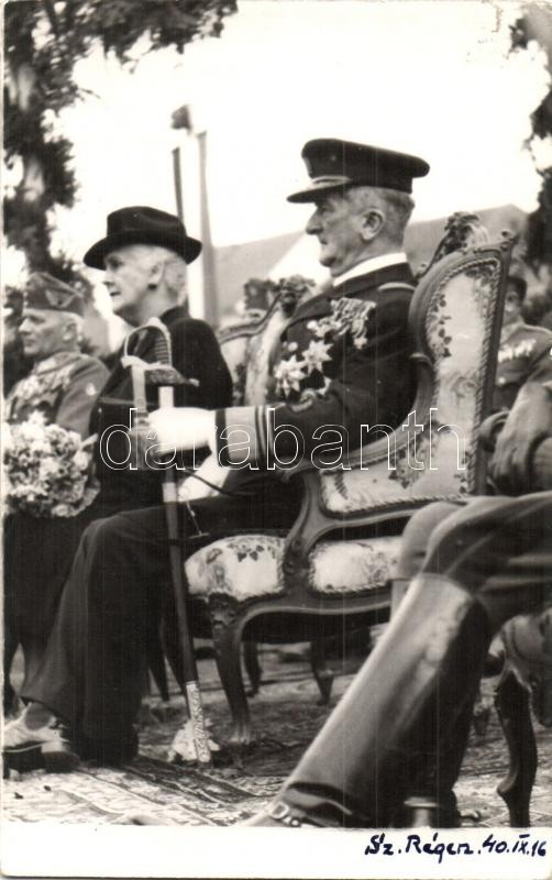 1940 Szászrégen, Reghin; bevonulás, Horthy Miklós és Purgly Magdolna t... https://www.darabanth.com/de/298-Fernauktion/298.0/Ansichtskarten/Siebenburgen~200007/1940-Szaszregen-Reghin-bevonulas-Horthy-Miklos-es-Purgly-Magdolna-tronon-entry-of-the-Hun~II1595374