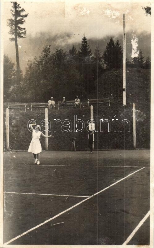 Beschreibung: Ótátrafüred, Stary Smokovec, Alt-Schmecks; teniszpálya teniszezőkkel / tennis players, tennis court, Foto Dietz photo (fl)