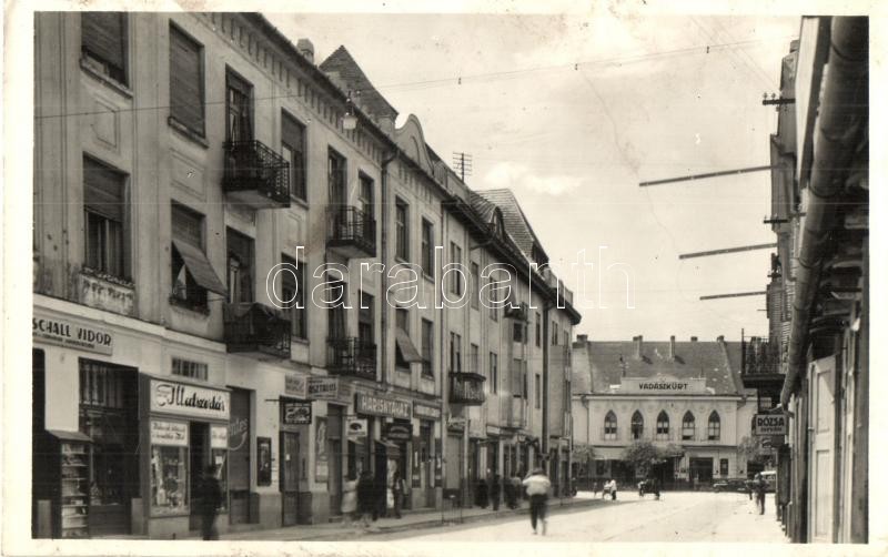 Zombor, Sombor; Vadászkürt szálloda, Schall Vidor, Rózsa István üzletei, illatszertár, asztalos, harisnyaáruház, hentes, Schlotzer József kiadása / hotel, shops, perfumery, carpenter, stockings store, butcher (fa)