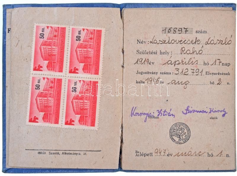 ~1948. "Gépjárművezetők Szabad Szakszervezete" zománcozott Br gomblyuk... https://www.darabanth.com/de/298-Fernauktion/298.0/Numismatik/Faleristik-Auszeichnungen-Medaillen-Ordnen~300016/7E1948-Gepjarmuvezetok-Szabad-Szakszervezete-zomancozott-Br-gomblyukjelveny-1548-sorszam~II1596940