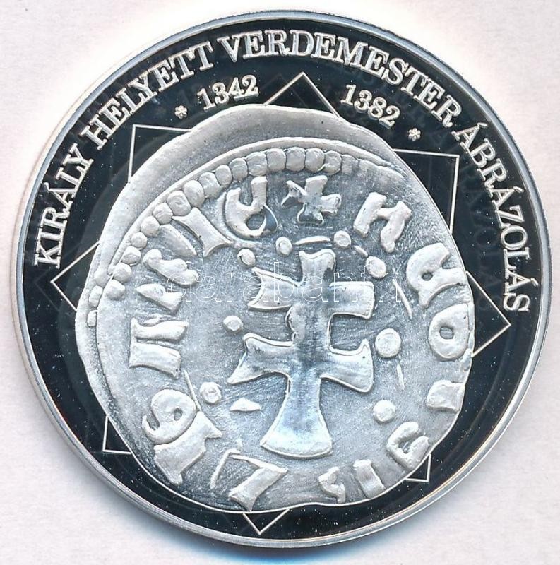 Beschreibung: DN "A magyar nemzet pénzérméi - Nagy Lajos szerecsenfejes dénárja 1342-1382" Ag emlékérem tanúsítvánnyal (10,37g/0.999/35mm) T:PP