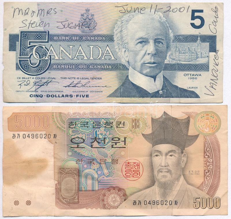 Vegyes: Kanada 1986. 5$ + Dél-Korea 1983. 5000W T:III fo., kis anyaghiány