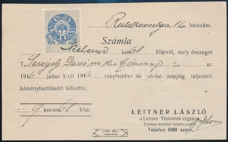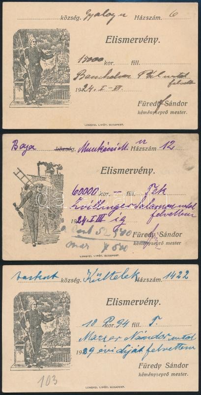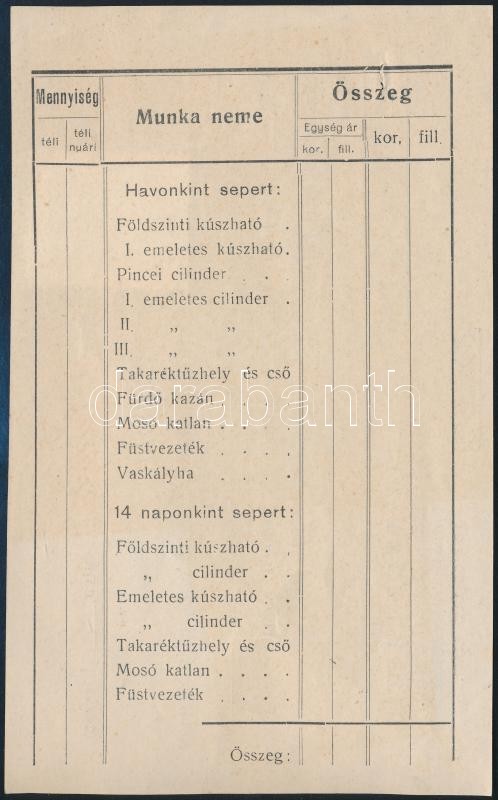 1916, 1930 2 db kéményseprő számla https://www.darabanth.com/de/299-Fernauktion/299.0/Andere-Sammelgebiete/Dokument~17/1916-1930-2-db-kemenysepro-szamla~II1604760