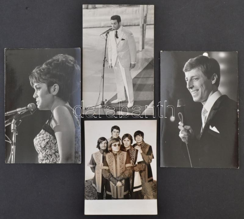 Beschreibung: 1 db Illés zenekart ábrázoló eredeti fotó, valamint 3 táncdalfesztiválos kép