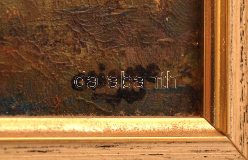 Beschreibung: Czinege Zsolt (1967- ): Fák a tóparton. Olaj, vászon, jelzett, keretben, 15×30 cm.
