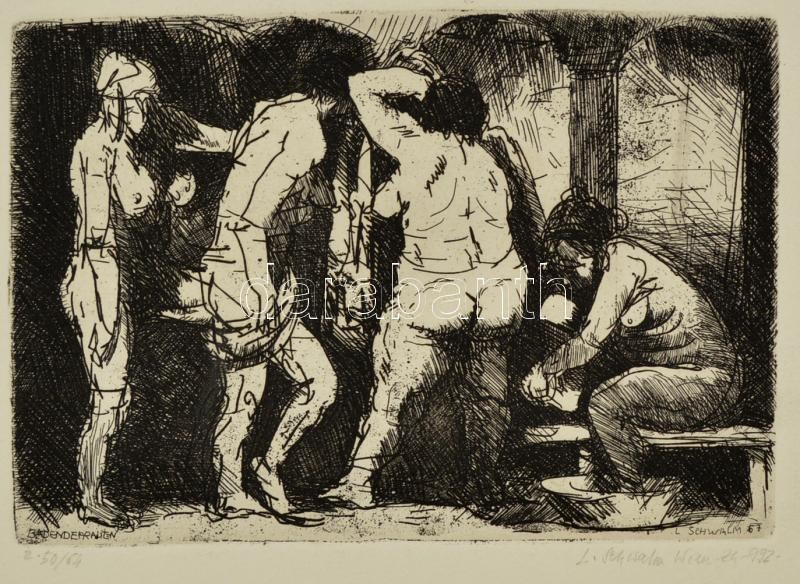 Schwalm László (1927-1998): Fürdőző nők. Rézkarc, papír, jelzett, 11×1... https://www.darabanth.com/de/299-Fernauktion/299.0/Andere-Sammelgebiete/Gemalde-und-Grafiken~1/Schwalm-Laszlo-1927-1998-Furdozo-nok-Rezkarc-papir-jelzett-11C39715-cm~II1598469