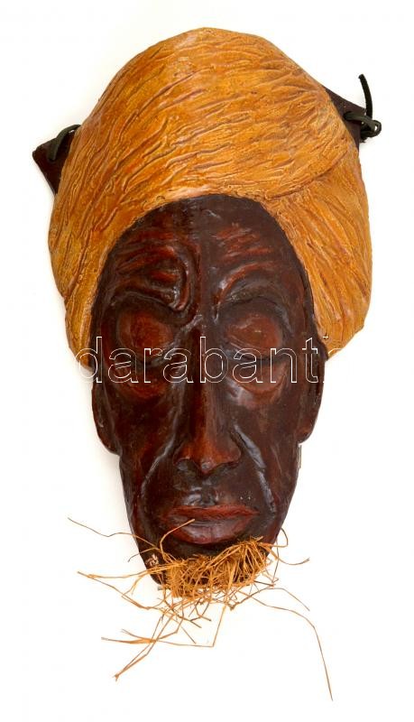 Beschreibung: Kerámia maszk falidísz, jelzés nélkül, szélein kis sérülésekkel, 26×18 cm