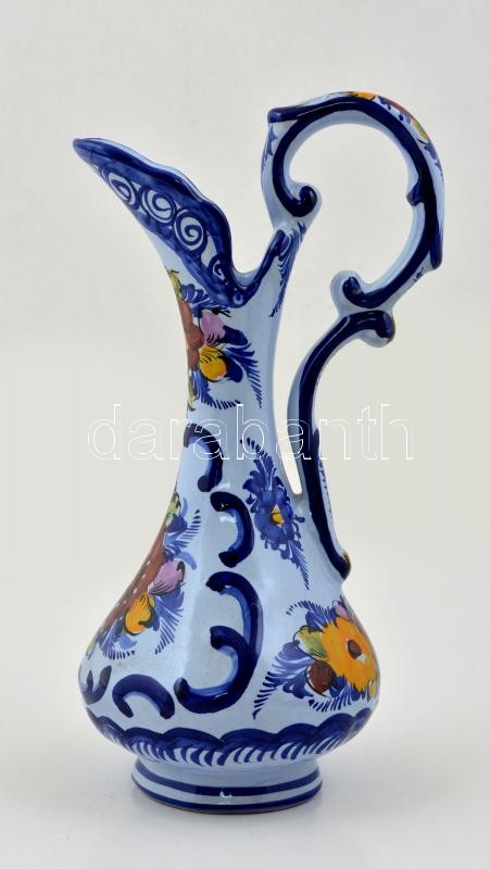 Beschreibung: Kézzel festett virág mintás dísz kiöntő, mázas kerámia, jelzett, m:33 cm