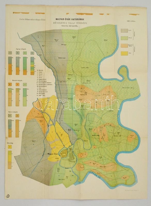 Beschreibung: 1896 Treitz Péter: Magyar-Óvár határának részletes talaj térképe, M. Kir. Földtani Intézet Évkönyve XI. kötet, 68x50 cm
