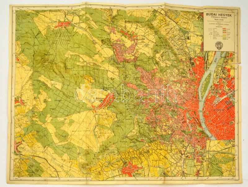 1947 Budai hegyek kiránduló térképe. 1:25.000. Bp., Honvéd Térképészeti Intézet, hajtás mentén szakadással, 63x80 cm. Tiszteletpéldány Timár Gyula vezérörnagy részére.