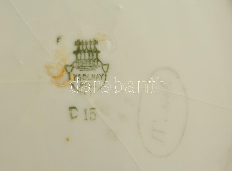 Zsolnay virág mintás teás kiöntő, kis kiöntő, matricás, jelzett, kopot... https://www.darabanth.com/de/299-Fernauktion/299.0/Andere-Sammelgebiete/Porzellan~8/Zsolnay-virag-mintas-teas-kionto-kis-kionto-matricas-jelzett-kopott-m12-16-cm~II1602479