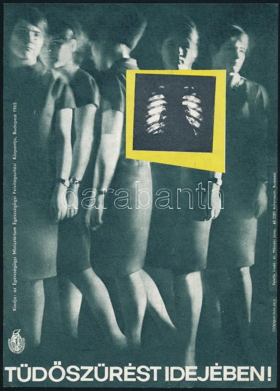 1965 "Tüdőszűrést idejében", egészségügyi plakát, Magyar Hirdető / Egészségügyi Minisztérium Egészségügyi Felvilágosítási Központja, ofszet, papír, 24×17 cm