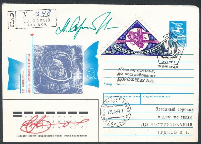 Alekszandr Viktorenko (1947- ) és Alekszandr Szerebrov (1944-2013) szovjet űrhajósok aláírásai emlékborítékon / Signatures of Aleksandr Viktorenko (1947- ) and Aleksandr Serebrov (1944-2013) Soviet astronauts on envelope