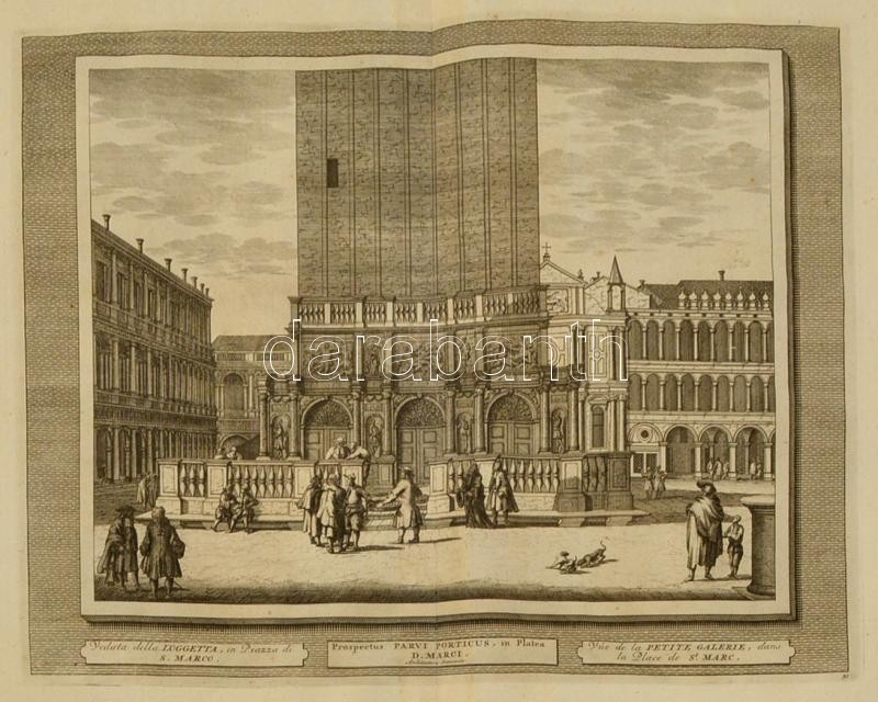 cca 1715-1750 Domenico Lovisa (1690 k.-1750 k.): Veduta della Logetta on Piazza di S. Marco Velencében, rézmetszet, papír, a szerző Il gran teatro di Venezia c. munkájából, olasz, latin és francia nyelven feliratozva, 28×34,5 cm / cca 1715-1750 Domenico Lovisa (cca 1690-cca 1750): copper etching, paper, from the author's Il gran teatro di Venezia, with notes in Italian, Latin and French, 28×34,5 cm
