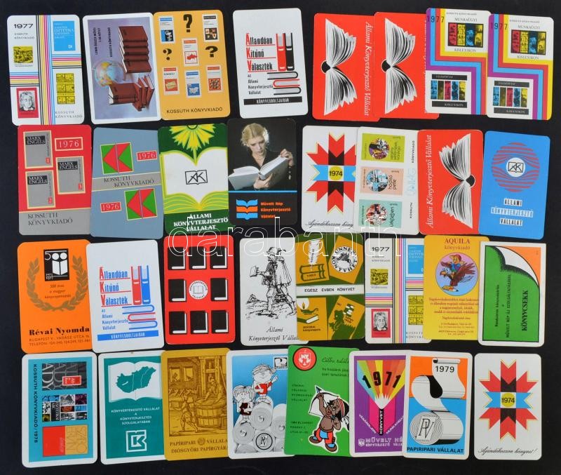 32 db Könyvterjesztő Vállalat kiadású kártyanaptár https://www.darabanth.com/de/299-Fernauktion/299.0/Andere-Sammelgebiete/Werbungen~21/32-db-Konyvterjeszto-Vallalat-kiadasu-kartyanaptar~II1604778