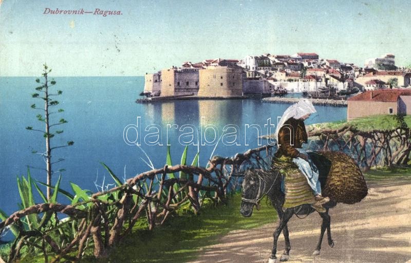 Dubrovnik, Ragusa; general view, donkey (EK) https://www.darabanth.com/de/299-Fernauktion/299.0/Ansichtskarten/Kroatien~500011/Dubrovnik-Ragusa-general-view-donkey-EK~II1599625