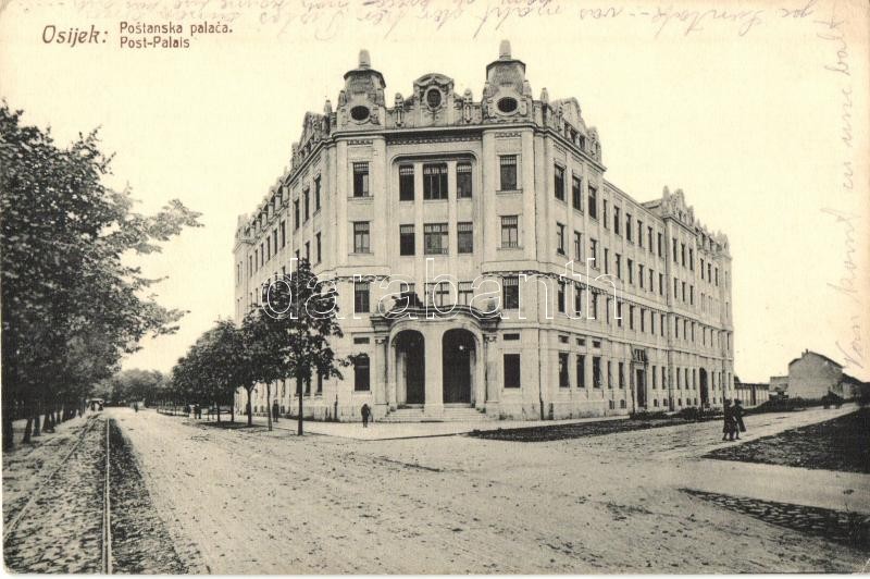 Eszék, Osijek, Esseg; Postanska palaca / Post palais / postal palace https://www.darabanth.com/de/299-Fernauktion/299.0/Ansichtskarten/Kroatien~500011/Eszek-Osijek-Esseg-Postanska-palaca-Post-palais-postal-palace~II1601891