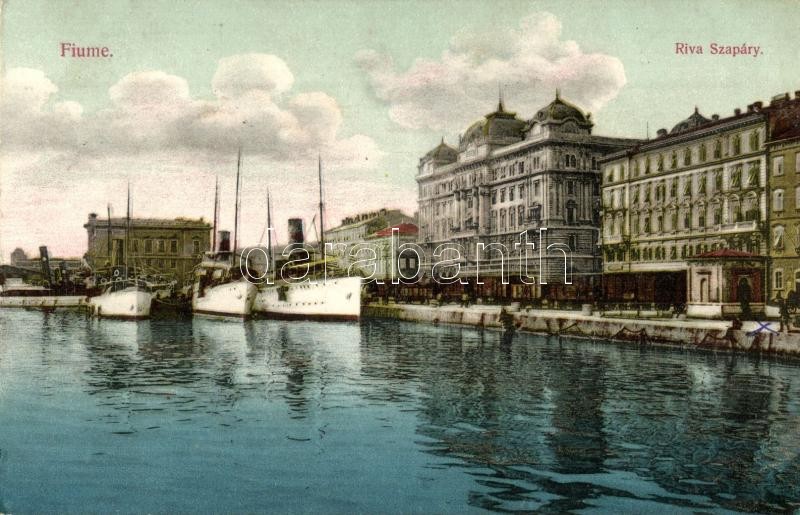Fiume, Riva Szapáry. Divald Károly 1707. https://www.darabanth.com/de/299-Fernauktion/299.0/Ansichtskarten/Kroatien~500011/Fiume-Riva-Szapary-Divald-Karoly-1707~II1598596