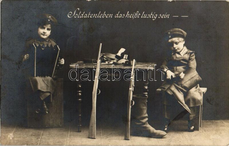 Beschreibung: Soldatenleben das heisst lustig sein / WWI German military humour, children