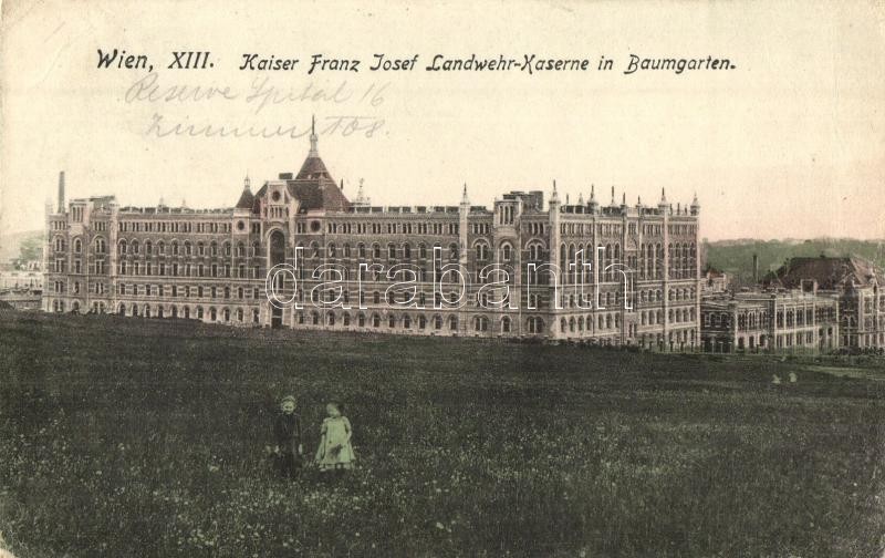 Vienna, Wien XIII. Baumgarten, Kaiser Franz Josef Landwehr-Kaserne / m... https://www.darabanth.com/de/299-Fernauktion/299.0/Ansichtskarten/Osterreich~500019/Vienna-Wien-XIII-Baumgarten-Kaiser-Franz-Josef-Landwehr-Kaserne-military-barracks-EK~II1599453