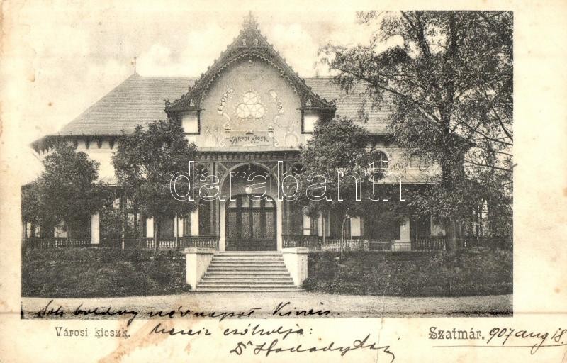 1907 Szatmárnémeti, Szatmár, Satu Mare; Városi Kioszk. Divald Károly 8... https://www.darabanth.com/de/299-Fernauktion/299.0/Ansichtskarten/Siebenburgen~500008/1907-Szatmarnemeti-Szatmar-Satu-Mare-Varosi-Kioszk-Divald-Karoly-827-kiosk-fl~II1598568