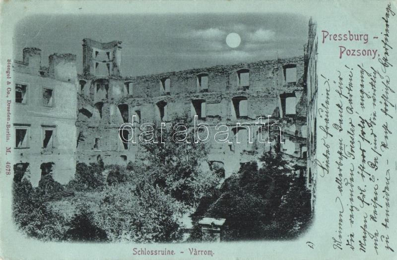 1899 Pozsony, Pressburg, Bratislava; várrom, este / Schlossruine / cas... https://www.darabanth.com/de/299-Fernauktion/299.0/Ansichtskarten/Slowakei~500009/1899-Pozsony-Pressburg-Bratislava-varrom-este-Schlossruine-castle-ruins-night~II1601370