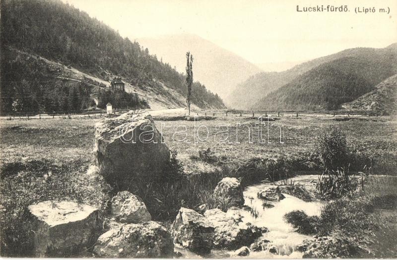 Beschreibung: Lucski-fürdő, Lúcky Kúpele; patak, Sochán P. kiadása / river