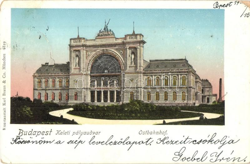 1899 Budapest VII. Keleti pályaudvar. Kunstanstalt Karl Braun & Co... https://www.darabanth.com/de/299-Fernauktion/299.0/Ansichtskarten/Ungarn~500007/1899-Budapest-VII-Keleti-palyaudvar-Kunstanstalt-Karl-Braun-Co-1819-b~II1597628