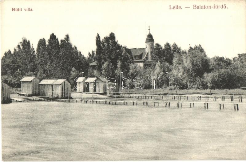 Balatonlelle, Lelle; Hüttl villa, Balaton part, kiadja Wollák József https://www.darabanth.com/de/299-Fernauktion/299.0/Ansichtskarten/Ungarn~500007/Balatonlelle-Lelle-Huttl-villa-Balaton-part-kiadja-Wollak-Jozsef~II1601962