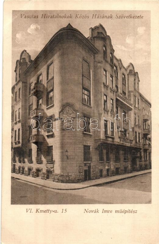 Budapest VI. Kmety György utca 15. Vasutas Hivatalnokok Közös Házának Szövetkezete, Novák Imre műépítész, Biró Pál kiadása + 1916 IV. Károly Koronázása Napján So. Stpl. (EK)