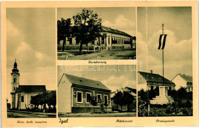 Igal, Római katolikus templom, Járásbíróság, Adóhivatal, Országzászló,... https://www.darabanth.com/de/299-Fernauktion/299.0/Ansichtskarten/Ungarn~500007/Igal-Romai-katolikus-templom-Jarasbirosag-Adohivatal-Orszagzaszlo-Kovacs-Gyula-kiadC3~II1603227