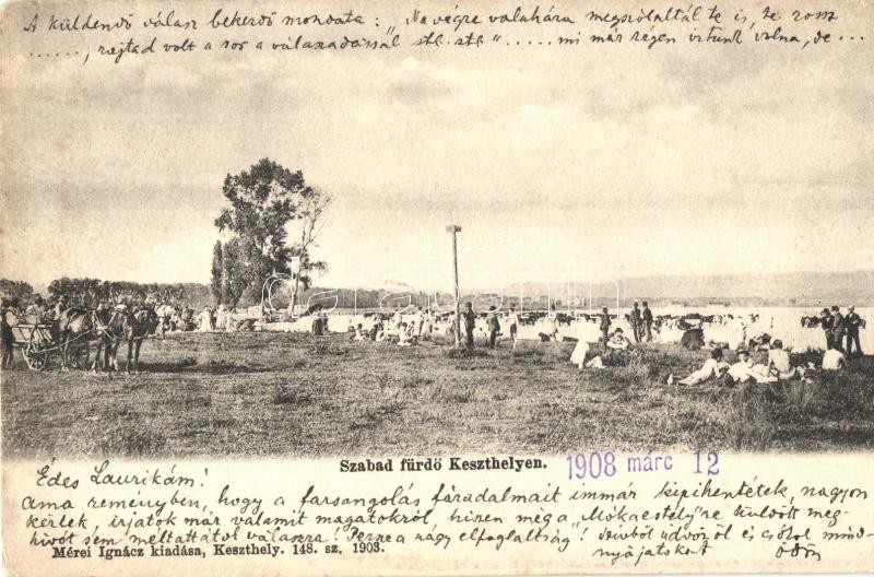 Keszthely, Szabad fürdő a Balaton partján. Mérei Ignác kiadása (EB) https://www.darabanth.com/de/299-Fernauktion/299.0/Ansichtskarten/Ungarn~500007/Keszthely-Szabad-furdo-a-Balaton-partjan-Merei-Ignac-kiadasa-EB~II1601216