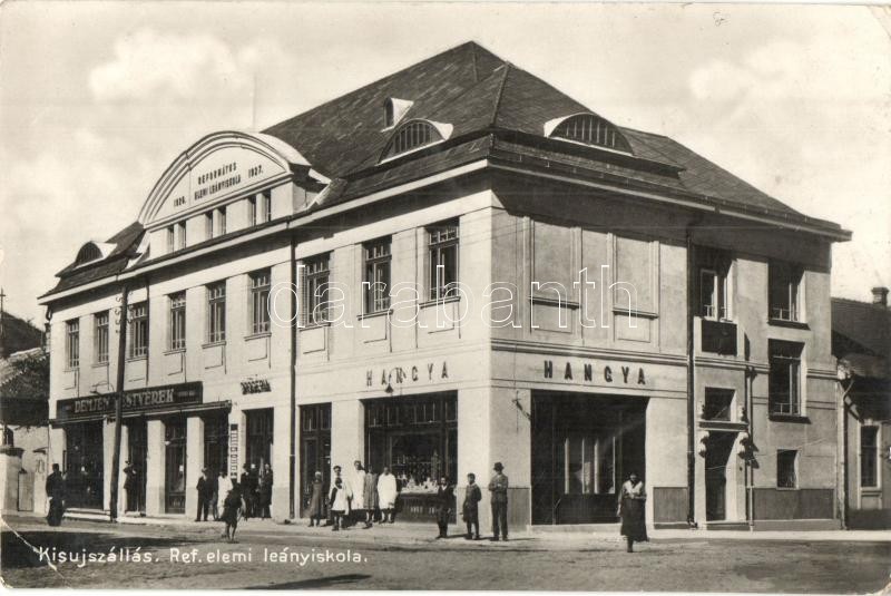 Beschreibung: Kisújszállás, Református elemi leányiskola, Hangya és Demjén testvérek üzlete, gyógyszertár. Záhony Lajos kiadása (EK)