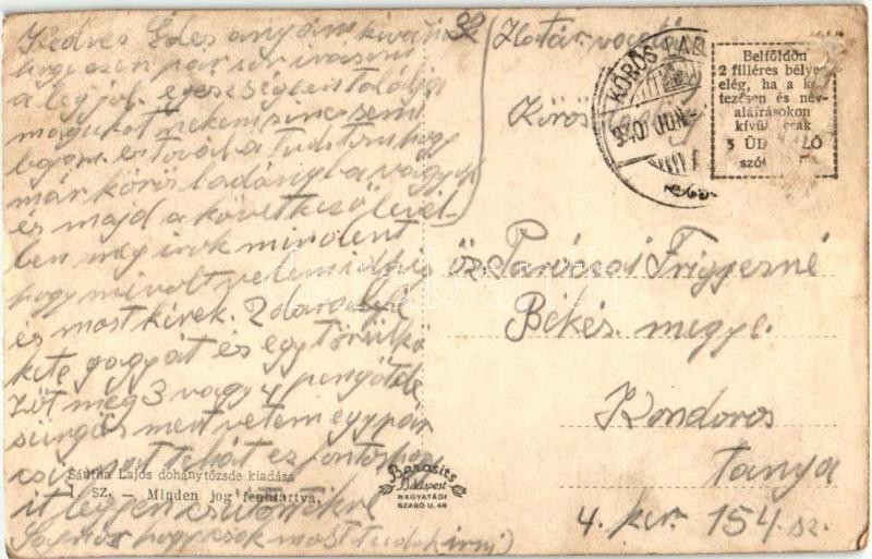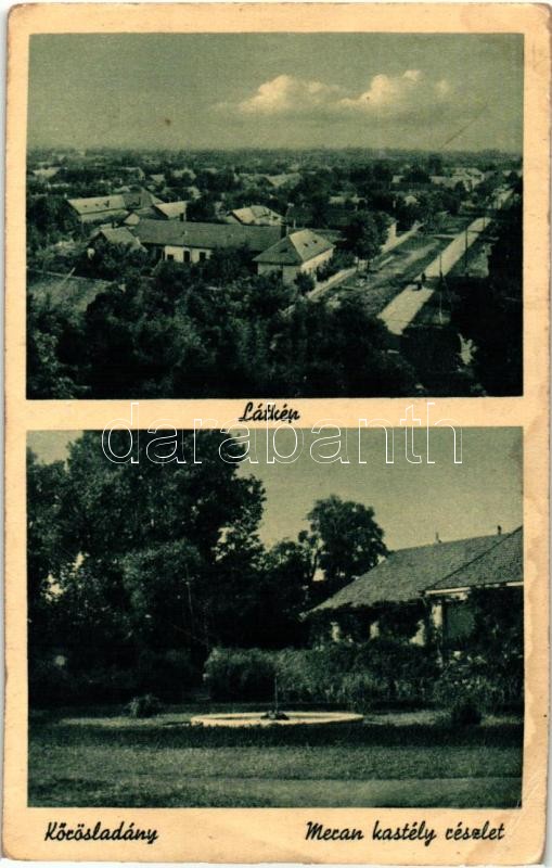 Beschreibung: Körösladány, látkép, Meran kastély, Sántha Lajos kiadása (ázott / wet damage)