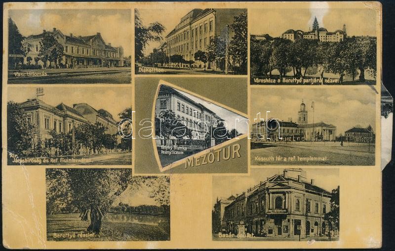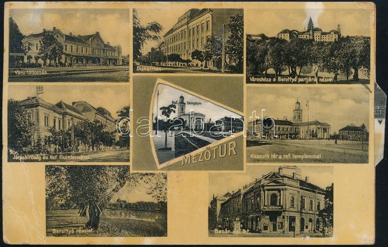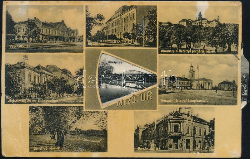 Mezőtúr, vasútállomás, Járásbíróság, Bazár, református fiúinternátus, ... https://www.darabanth.com/de/299-Fernauktion/299.0/Ansichtskarten/Ungarn~500007/Mezotur-vasutallomas-Jarasbirosag-Bazar-reformatus-fiuinternatus-diakotthon-mec~II1598259