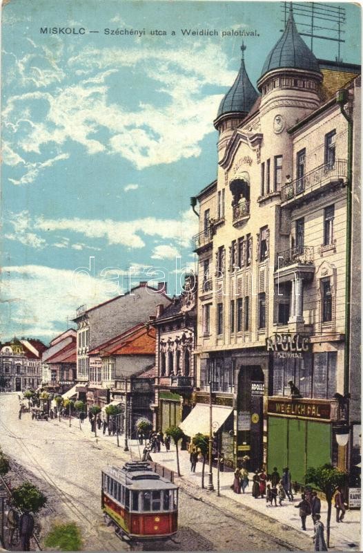 Miskolc, Széchenyi utca, Weidlich Pál palota és üzlet, villamos, Apoll... https://www.darabanth.com/de/299-Fernauktion/299.0/Ansichtskarten/Ungarn~500007/Miskolc-Szechenyi-utca-Weidlich-Pal-palota-es-uzlet-villamos-Apollo-szinhaz-fl~II1599482