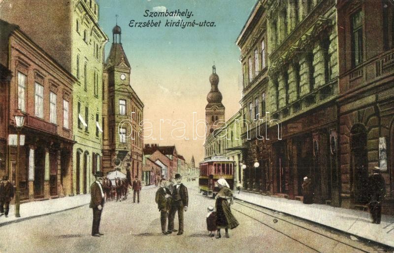 Szombathely, Erzsébet királyné utca, villamos (szakadások / tears) https://www.darabanth.com/de/299-Fernauktion/299.0/Ansichtskarten/Ungarn~500007/Szombathely-Erzsebet-kiralyne-utca-villamos-szakadasok-tears~II1598452