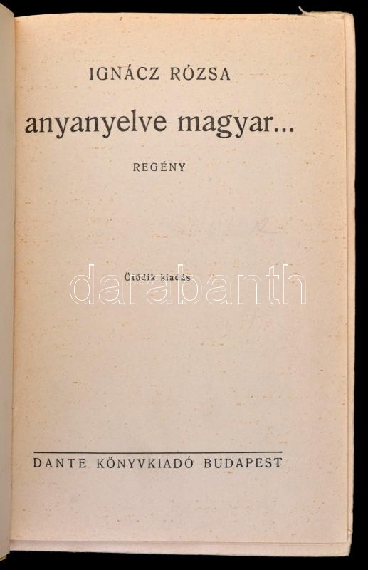 Ignácz Rózsa: Anyanyelve magyar. Bp., 1940, Dante. Kiadói egészvászon-... https://www.darabanth.com/de/299-Fernauktion/299.0/Bucher/Bucher-Andere-kuriositaten~200016/Ignacz-Rozsa-Anyanyelve-magyar-Bp-1940-Dante-Kiadoi-egeszvaszon-kotes-kisse-kopottas-~II1584265