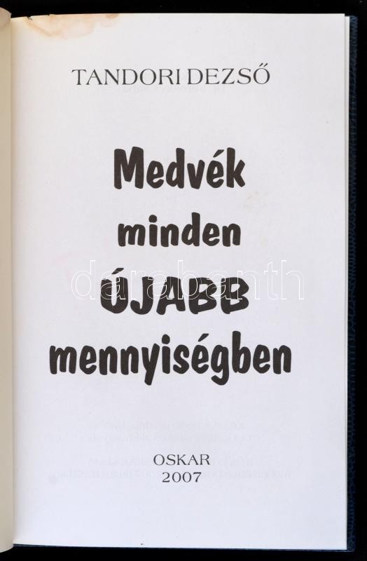 Tandori Dezső: Medvék minden újabb mennyiségben. Tandori Dezső grafikáival. Dozmat, 2007, Oskar. Átkötött műbőr-kötés, foltos lapokkal.