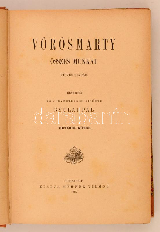 Vörösmarty összes munkái. Rend.: Gyulai Pál. 7. köt. Bp., 1885, Méhner... https://www.darabanth.com/de/299-Fernauktion/299.0/Bucher/Bucher-Andere-kuriositaten~200016/Vorosmarty-osszes-munkai-Rend-Gyulai-Pal-7-kot-Bp-1885-Mehner-Vilmos-Kisse-kopott-~II1440285