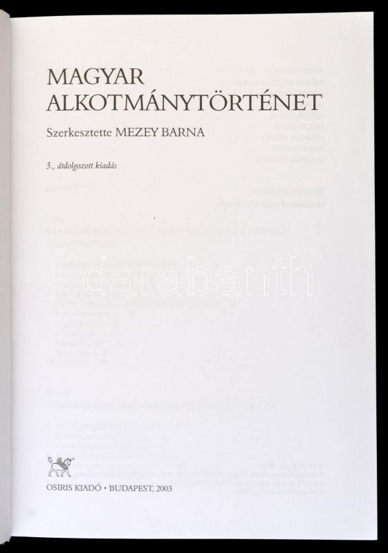 Magyar alkotmánytörténet. Szerk.: Mezey Barna. Osiris tankönyvek. Bp.,... https://www.darabanth.com/de/299-Fernauktion/299.0/Bucher/Bucher-Jura~200003/Magyar-alkotmanytortenet-Szerk-Mezey-Barna-Osiris-tankonyvek-Bp-2003-Osiris-5-atdolg~II1553631