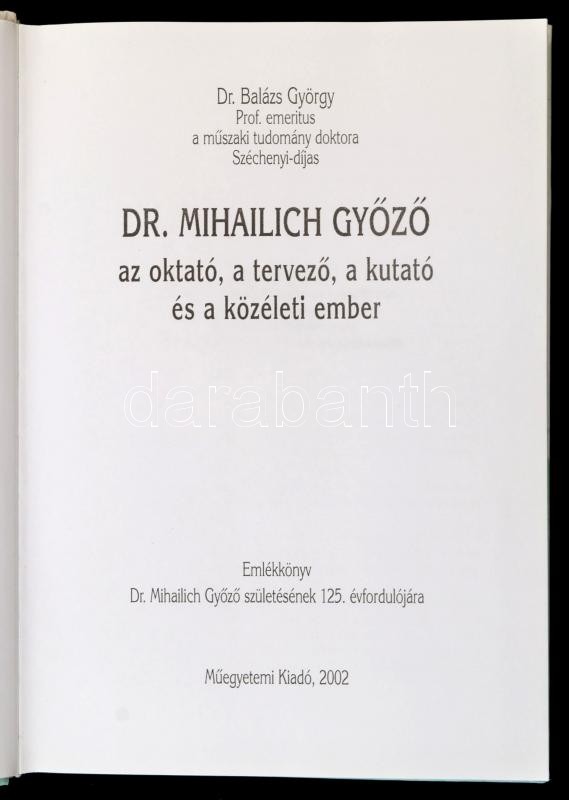 Balázs György: Dr. Mihalich Győző az oktató, a tervező, a kutató és kö... https://www.darabanth.com/de/299-Fernauktion/299.0/Bucher/Bucher-Technik~200011/Balazs-Gyorgy-Dr-Mihalich-Gyozo-az-oktato-a-tervezo-a-kutato-es-kozeleti-ember-Bp-2~II1598421