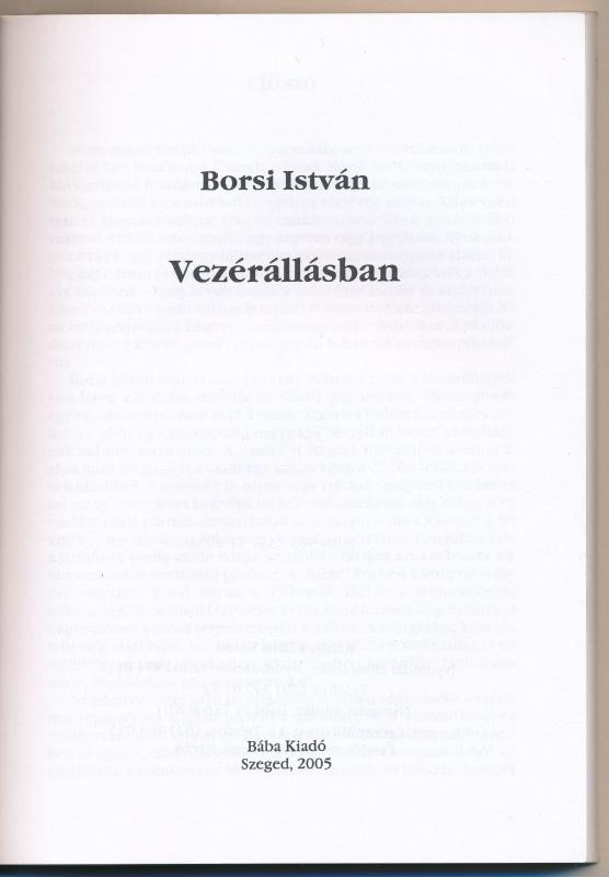 Borsi István: Vezérállásban. Szeged, 2005, Bába Kiadó. Kiadói papírköt... https://www.darabanth.com/de/299-Fernauktion/299.0/Bucher/Bucher-Technik~200011/Borsi-Istvan-Vezerallasban-Szeged-2005-Baba-Kiado-Kiadoi-papirkotesben~II1557166