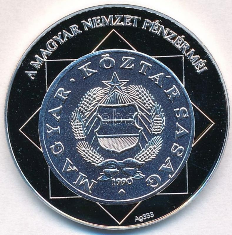 Beschreibung: DN "A magyar nemzet pénzérméi - A rendszerváltás téves verete 1989-1990" Ag emlékérem tanúsítvánnyal (15g/0.333/35mm) T:PP
