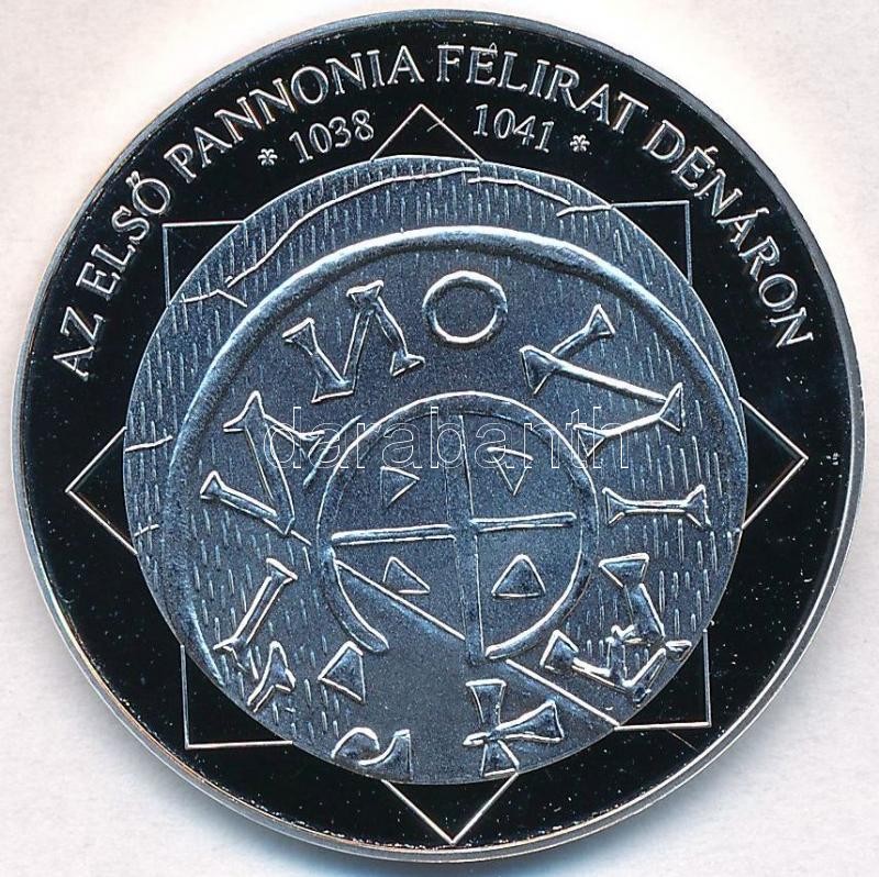 Beschreibung: DN "A magyar nemzet pénzérméi - Az első Pannonia felirat dénáron 1038-1041" Ag emlékérem tanúsítvánnyal (15g/0.333/35mm) T:PP